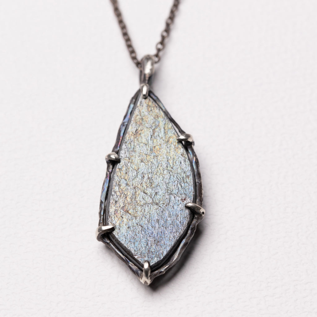 レインボーヘマタイトと燻し銀とK18の星屑のロングネックレス