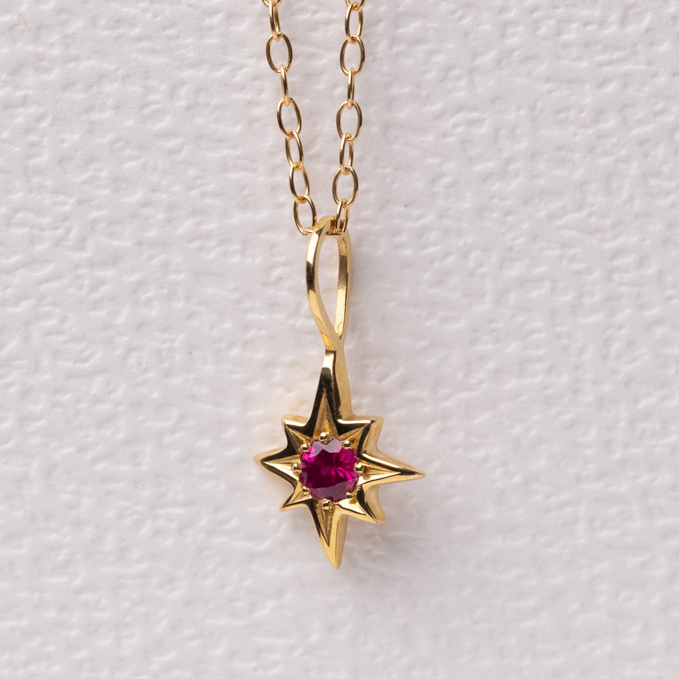 ルビーの濃いピンク色が目をひくネックレスです。八芒星の形は五角形とはまた違うお星様の印象です。チェーンは軽やかなものと合わせていますが、トップのループが大きめなので、他のチェーンに取り替えられます。つや消しです。