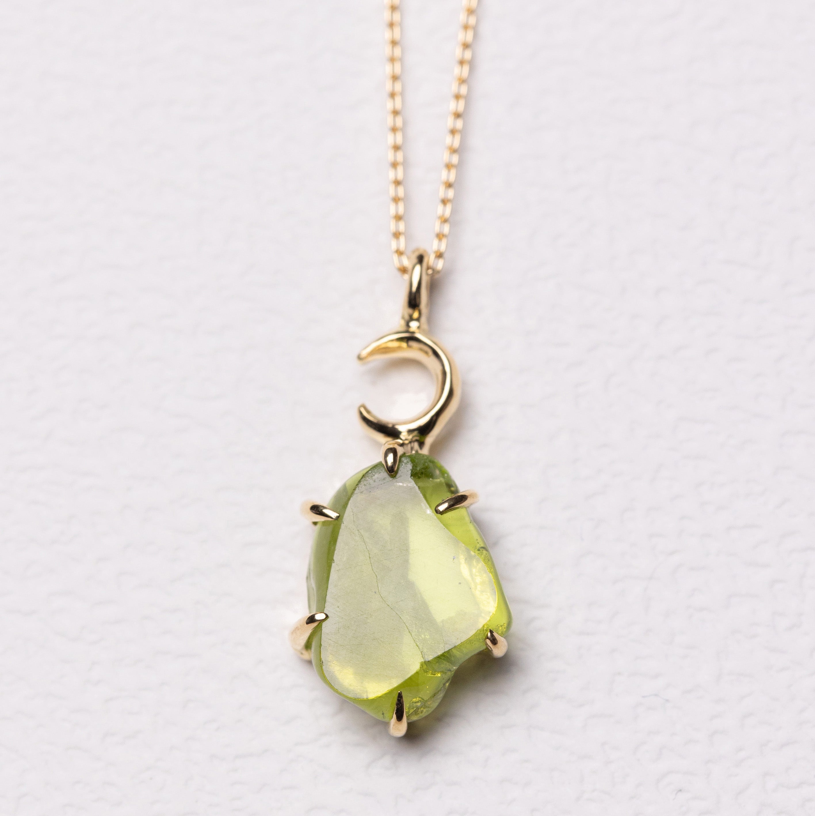 緑の光の破片と三日月 — ペリドットのネックレス