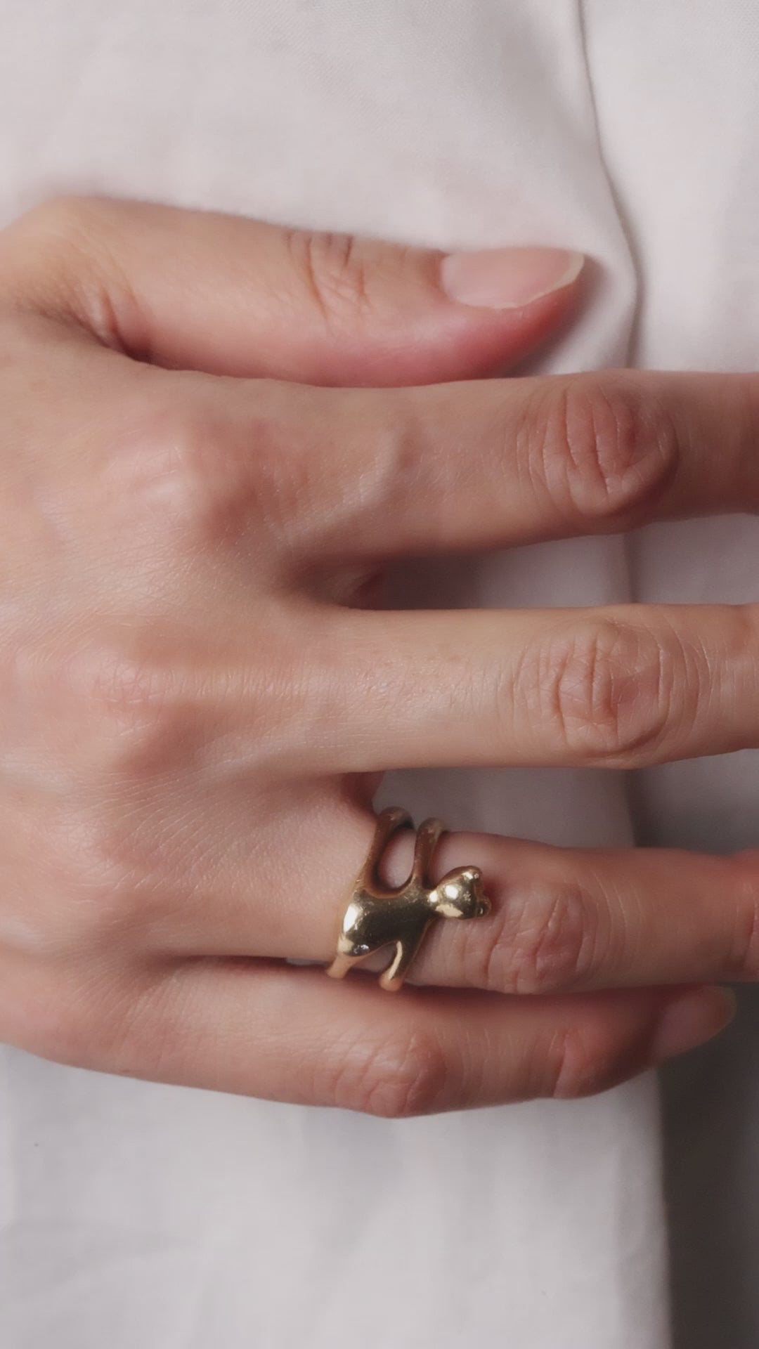 「光線のリング」と重ねづけすると、地金のラインと石のやわらかさが心地よい対比に。単品でも、重ねても、それぞれ違った表情が楽しめます。