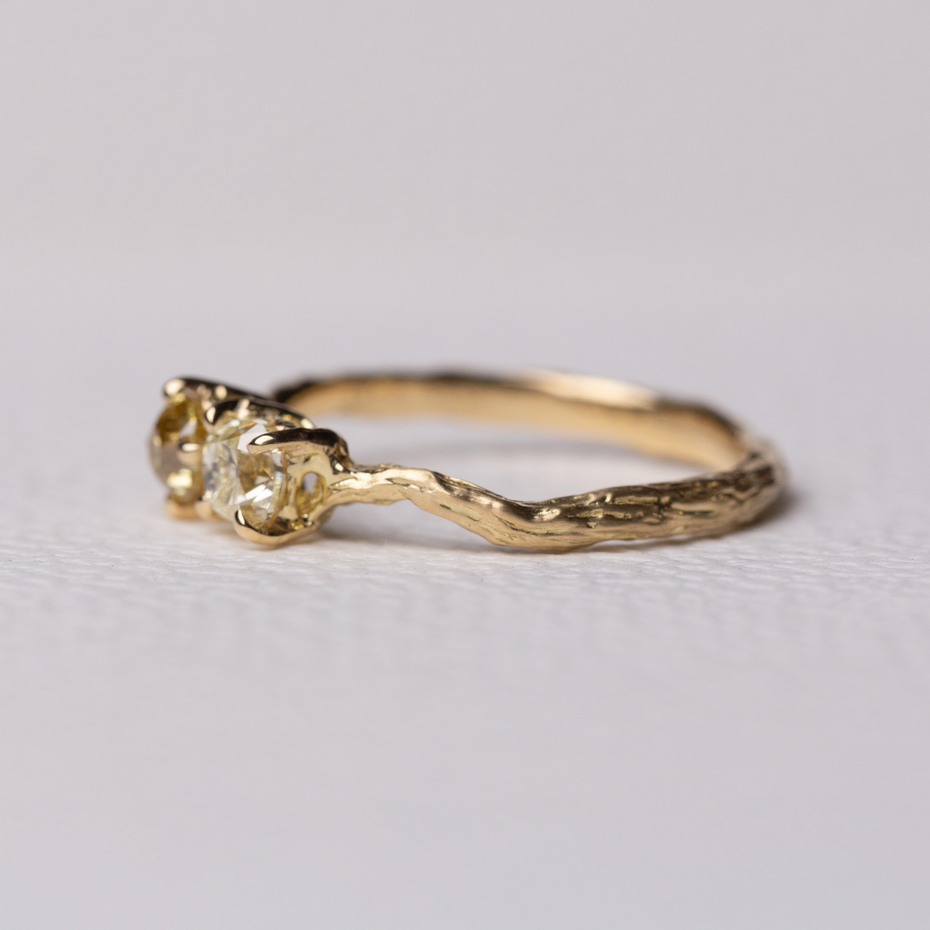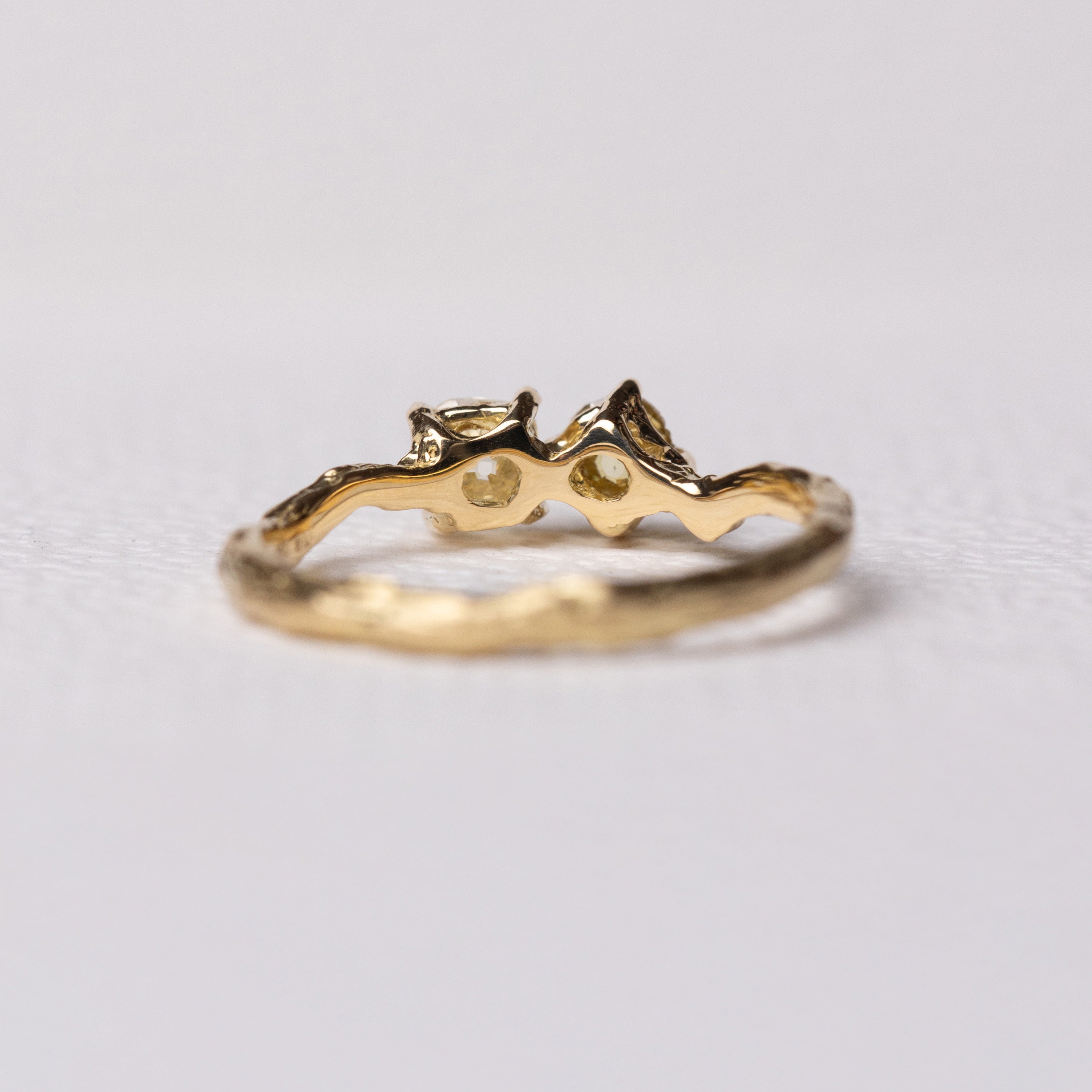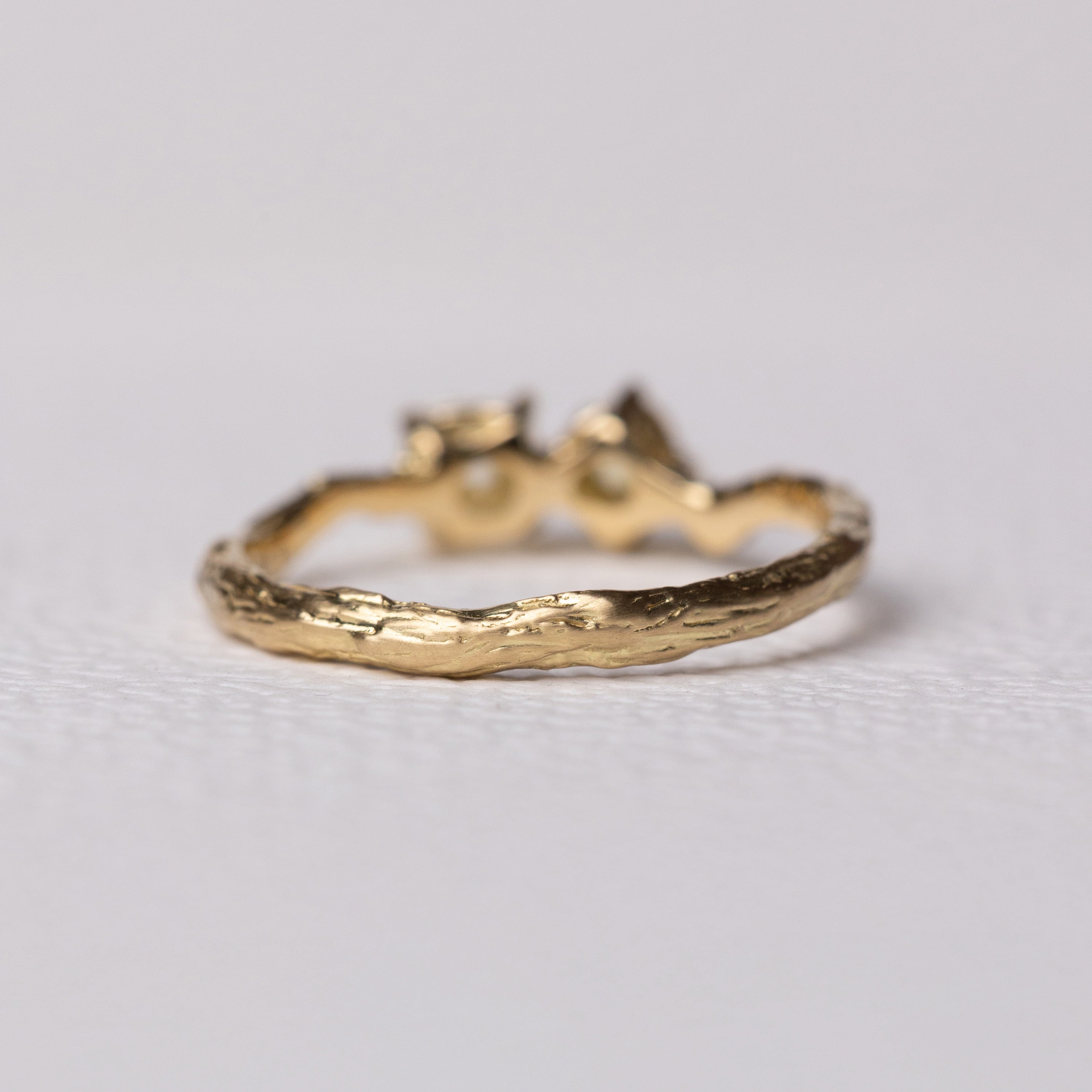 リング全体に流れるようなラインは、小枝のように自然なカーブを描き、指に添った時にしっくりと馴染みます。