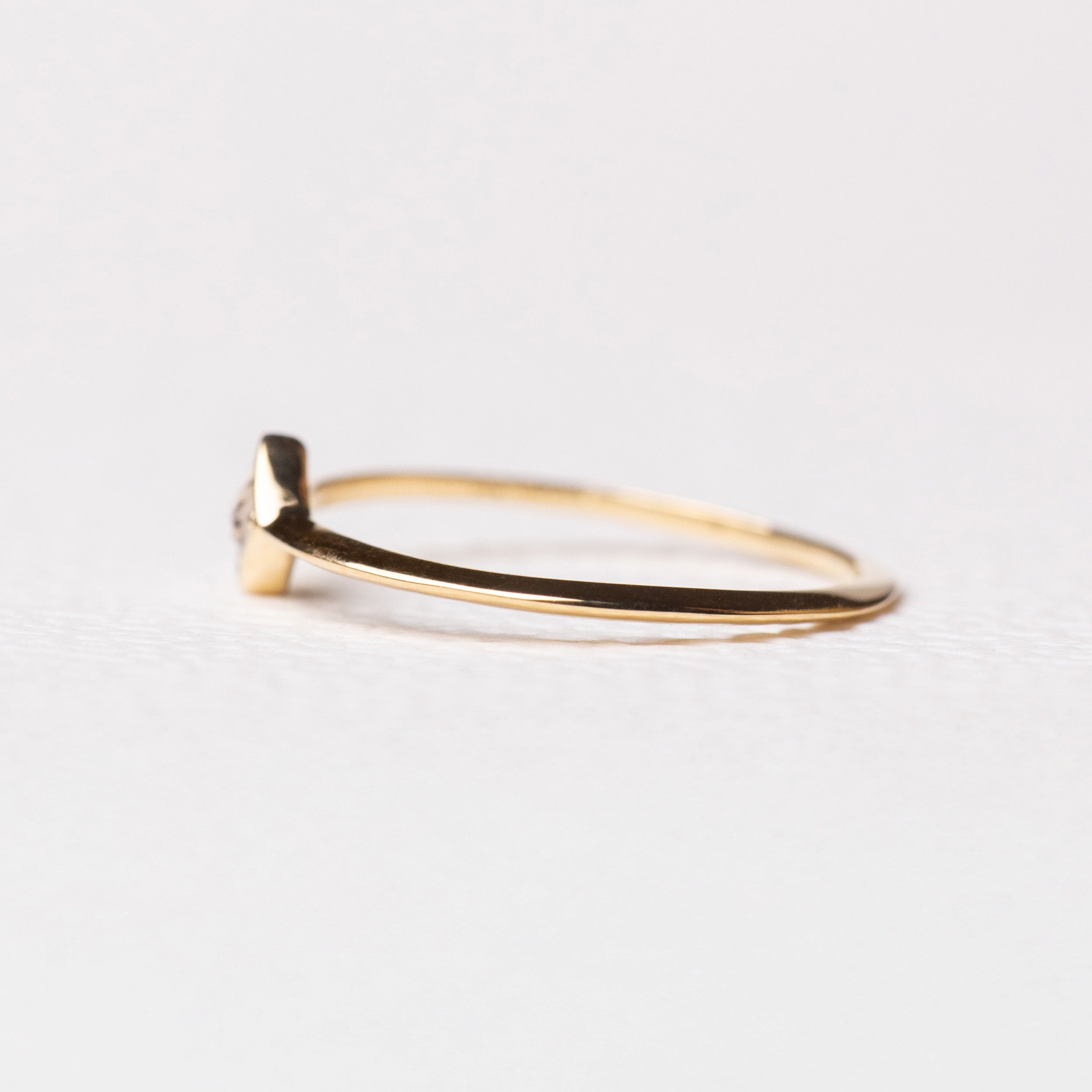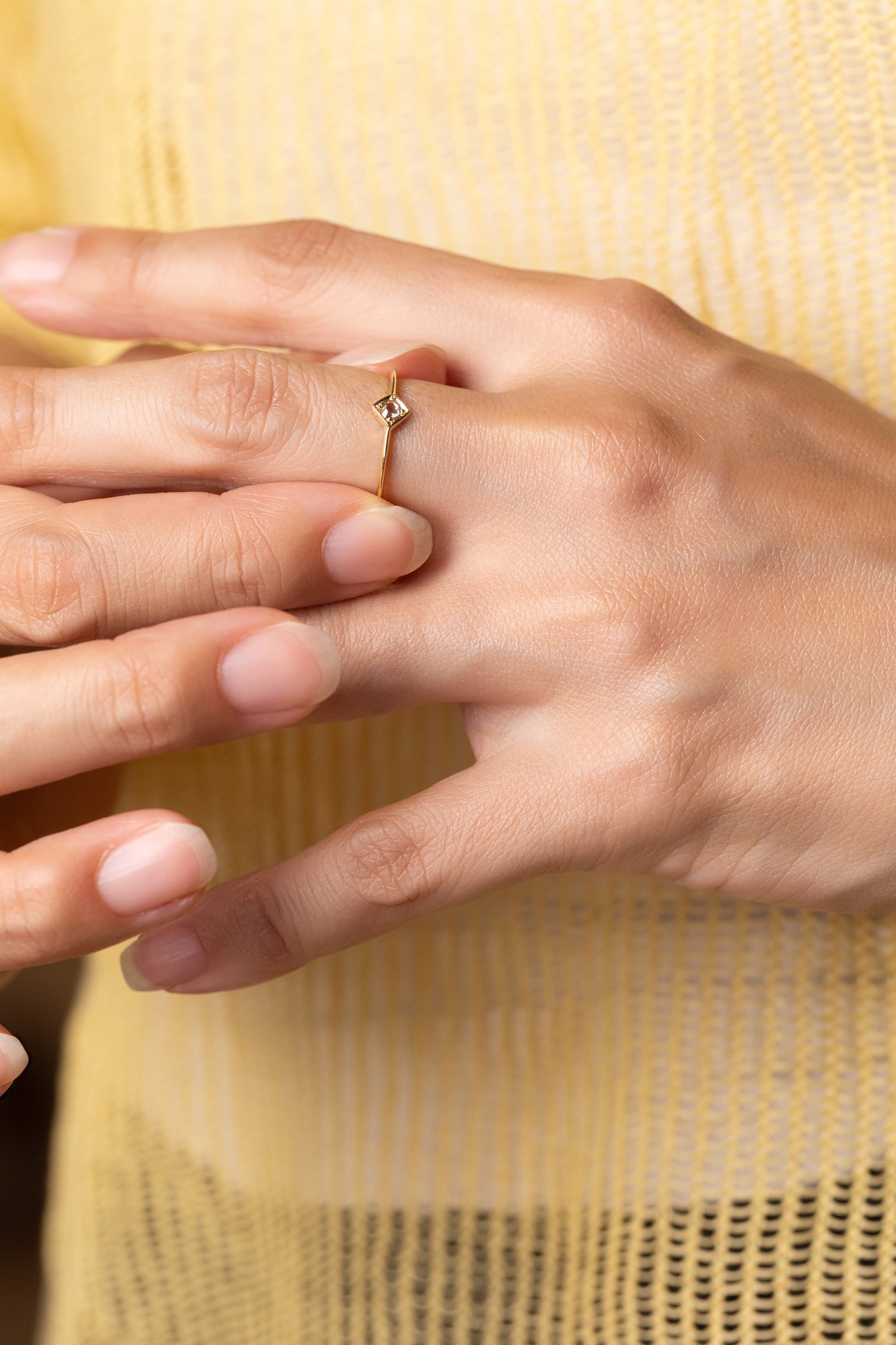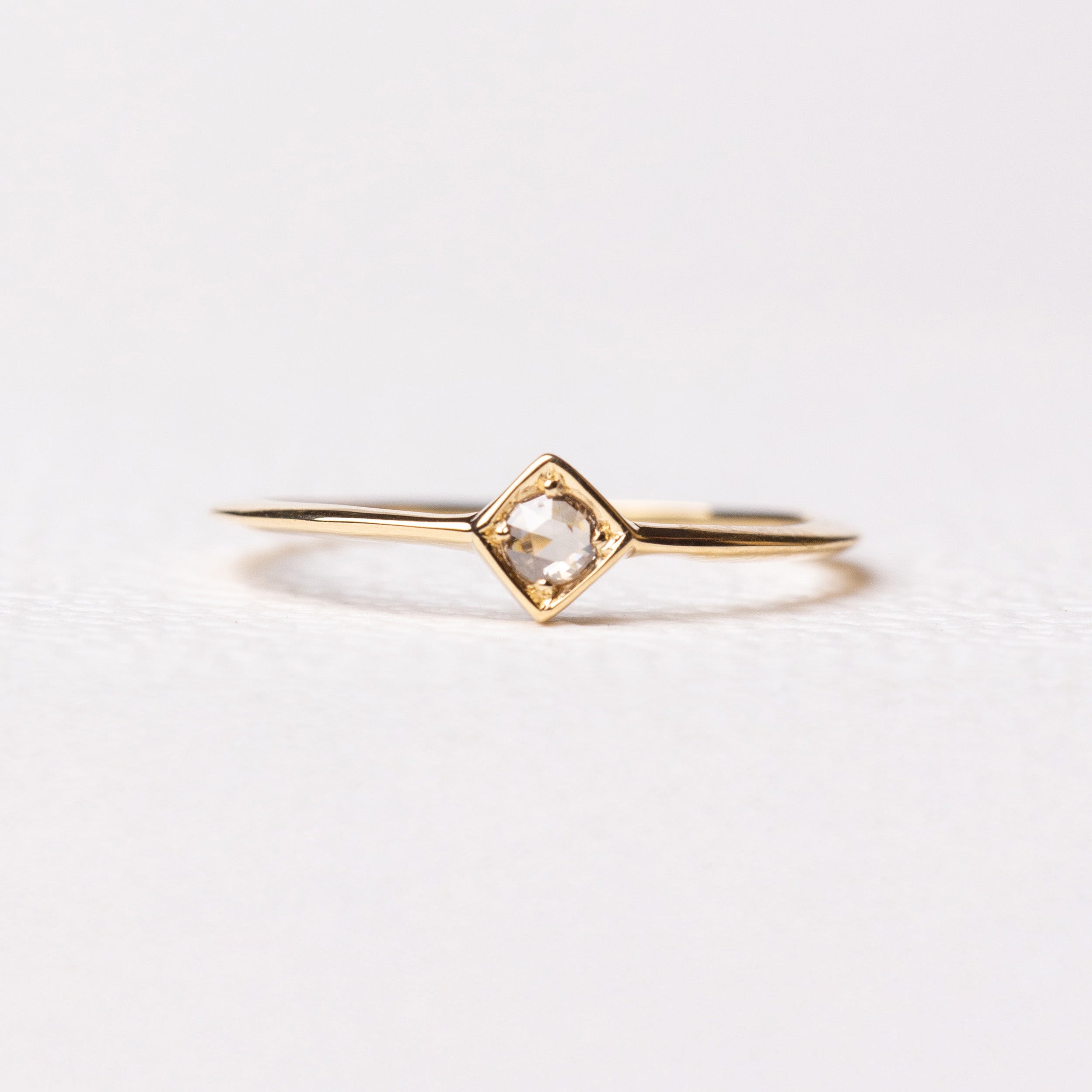 ブラウンをひとしずく含んだローズカットダイヤを、4つの粒で留めた華奢なリング。フラットな仕立てで日常にも自然に寄り添います。