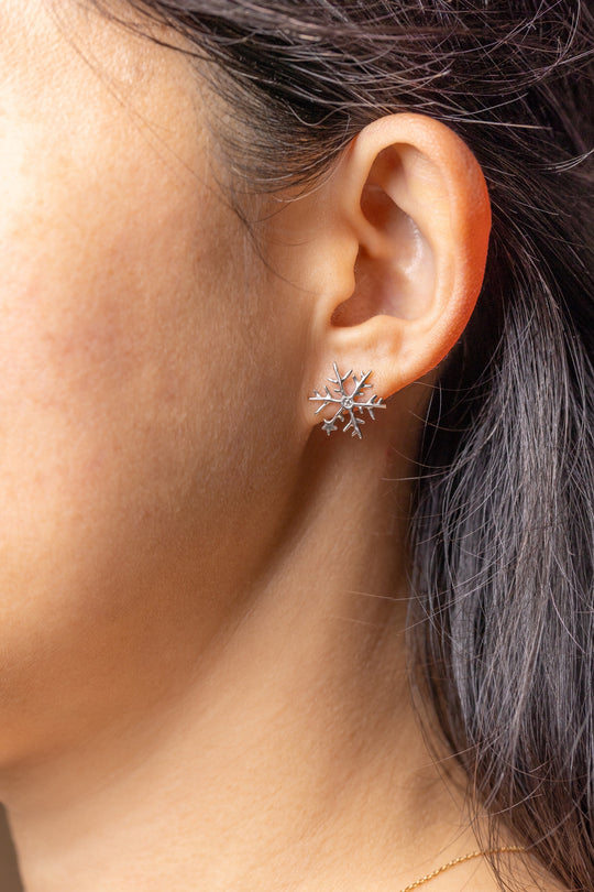 きらきらとした時間を思い起こさせるゴールドの雪の結晶のピアス 、ダイヤ無しのシルバーの雪の結晶のピアスもございます。