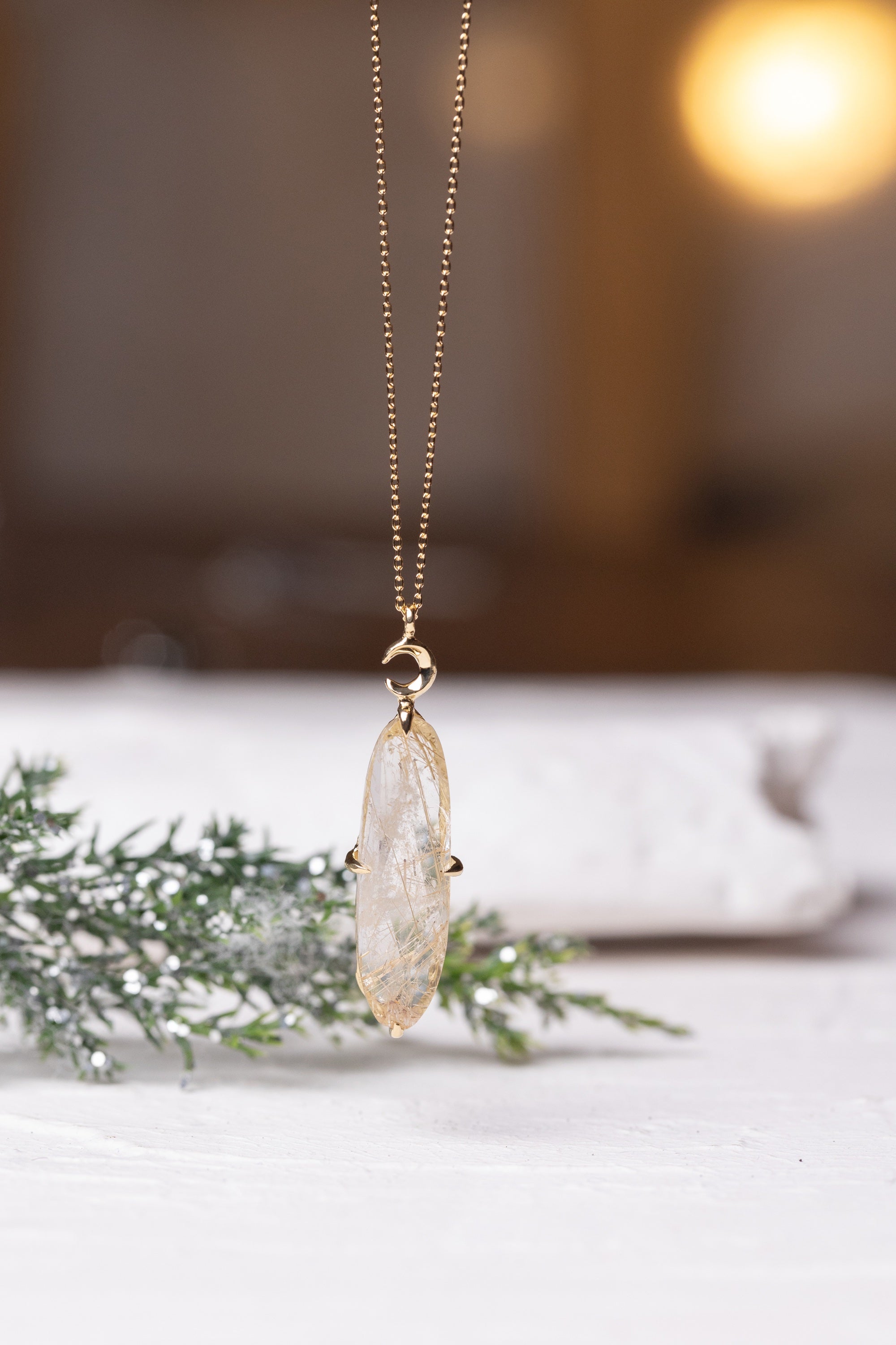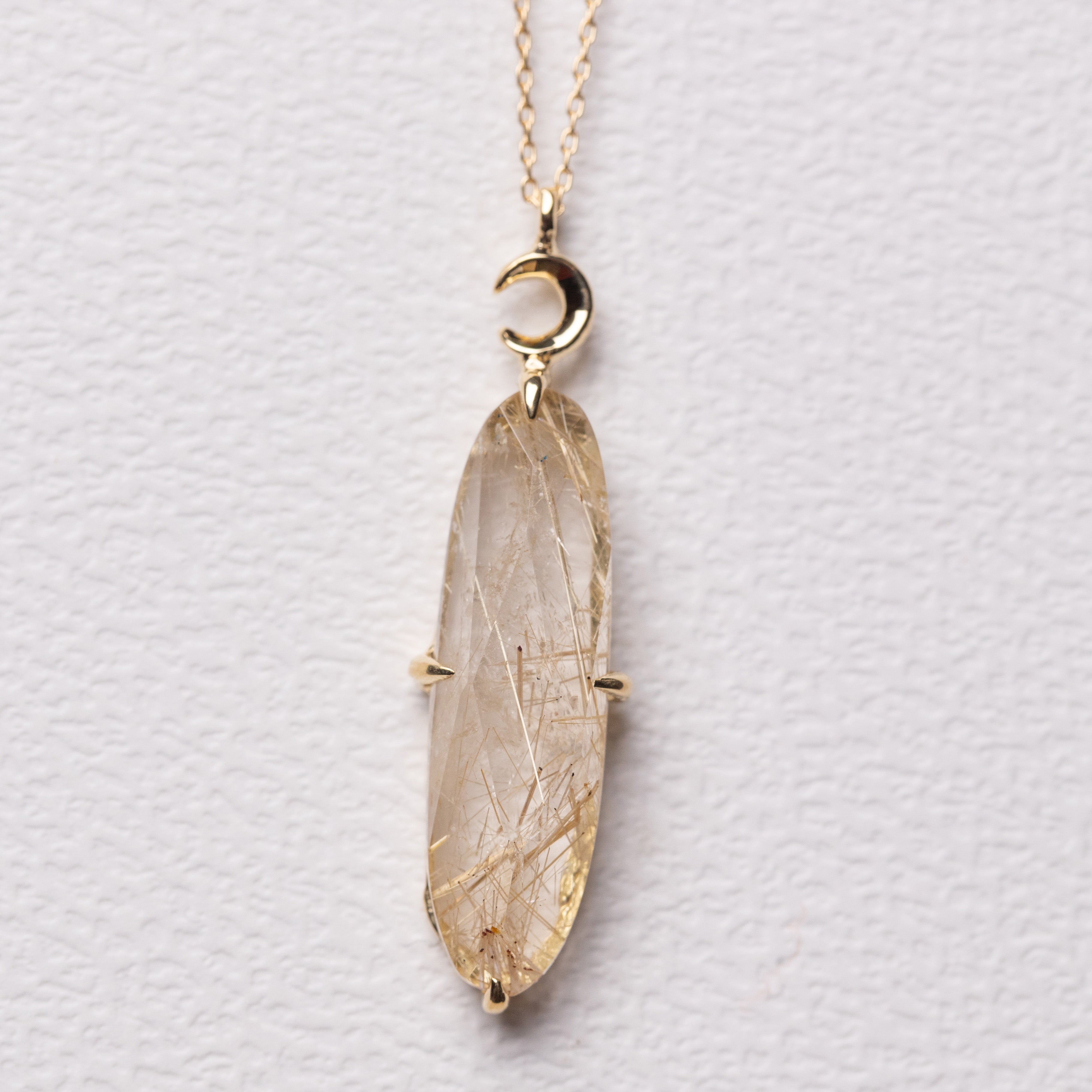 揺らぎのある石の表情に、控えめな月のモチーフを添えたネックレスです。