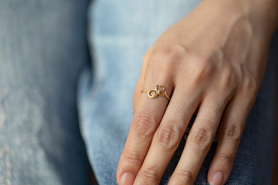丸い月にも、三日月にも見える月のモチーフと雲。小さなダイヤモンドも添えて、夜空の一瞬のシーンを小さなリングに切り取りました。月はマットな仕上げ、雲は鏡面仕上げで光りかたにコントラストをつけ、立体感を出しました。細いラインでもileava jewelryの世界とこだわりをしっかりと表現した、かわいいリングです。夜空に星をプラスして明るい手元にするならこちらのリングを隣に。