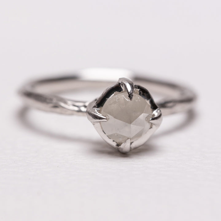 枝のテクスチャーが引き立つグレーダイヤのリング