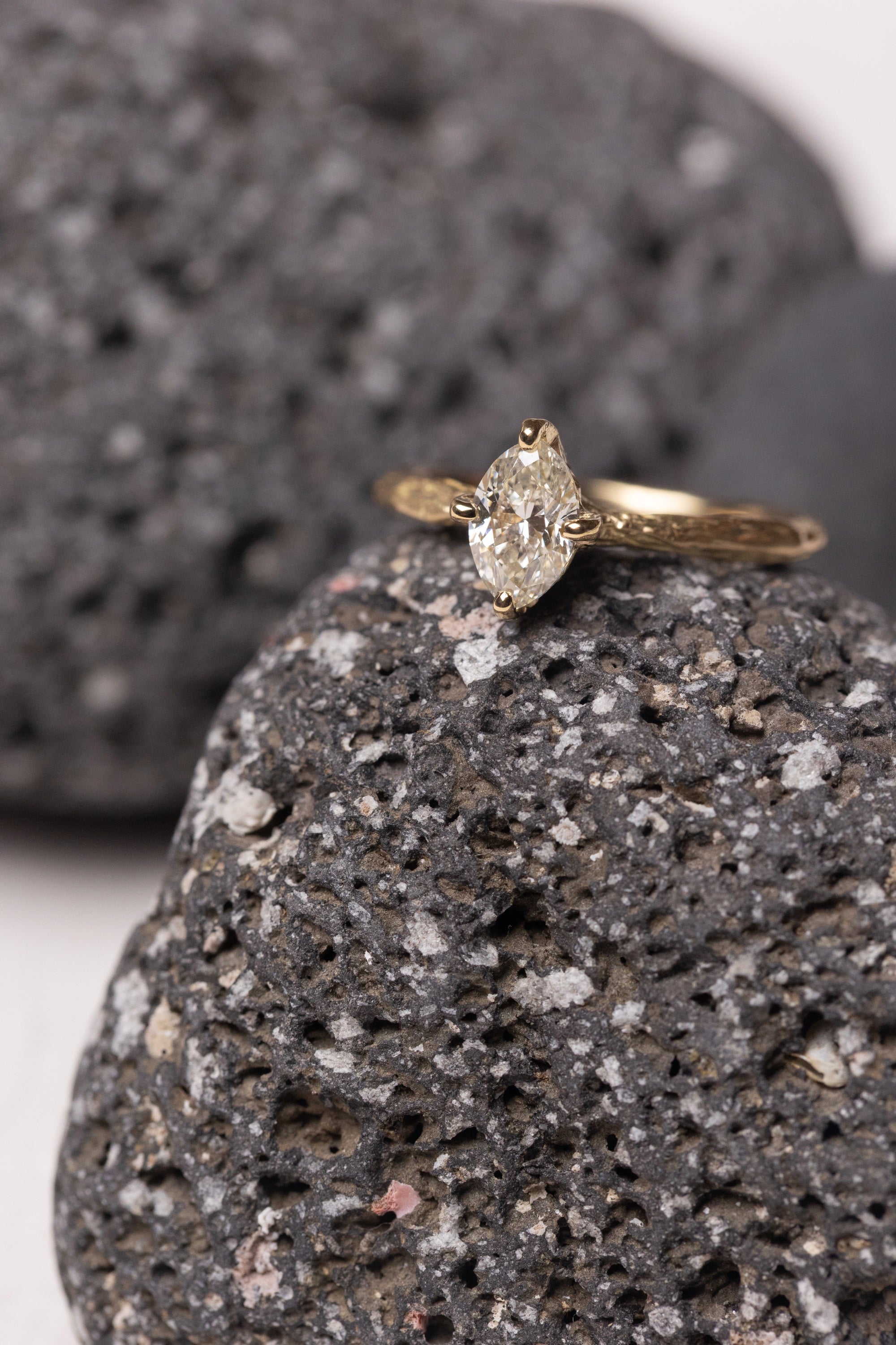 一見すると端正なダイヤモンドリングですが、目を留めると、どこか自然の気配を感じさせる一本です。