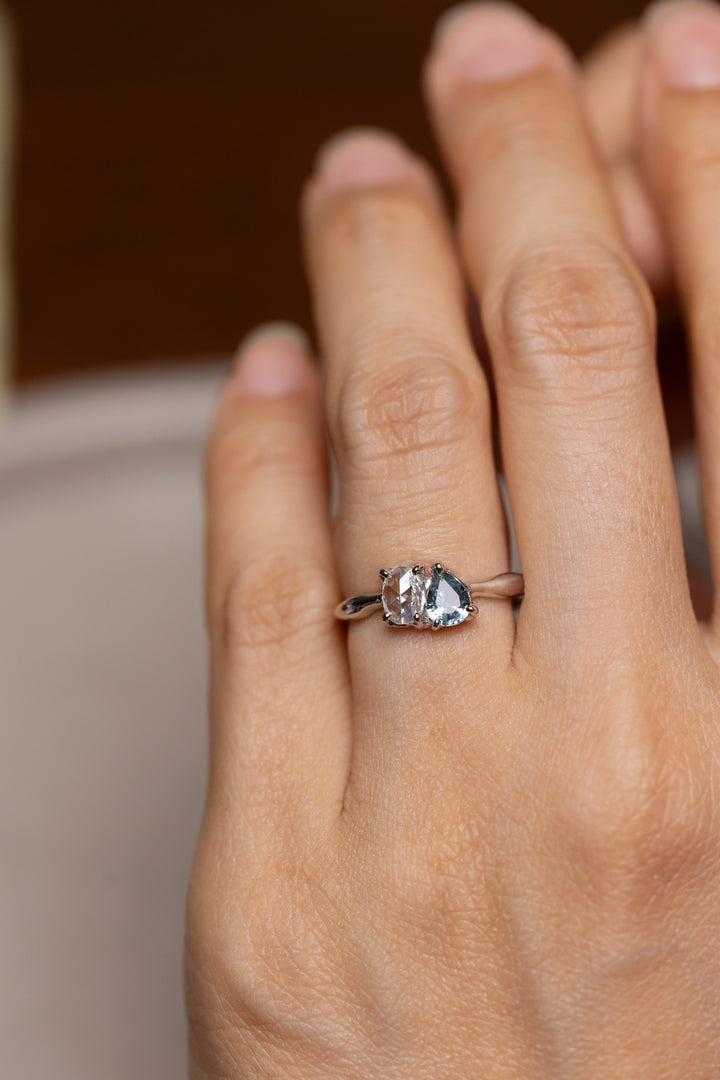 水のリング | ローズカットのダイヤと雫型のサファイアの「Toi et Moi」