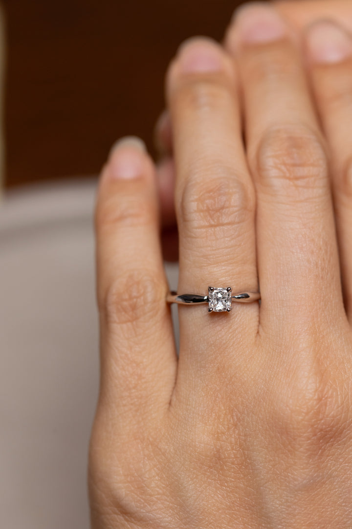 「アンティークダイヤモンド」とは、ブリリアントカットが確立されるより前の時代にカットされたダイヤモンドのこと。透明度とカット方法で強い輝きを追求した「ブリリアントカット」を施したダイヤモンドに対して、柔らかい光りかたが特徴です。