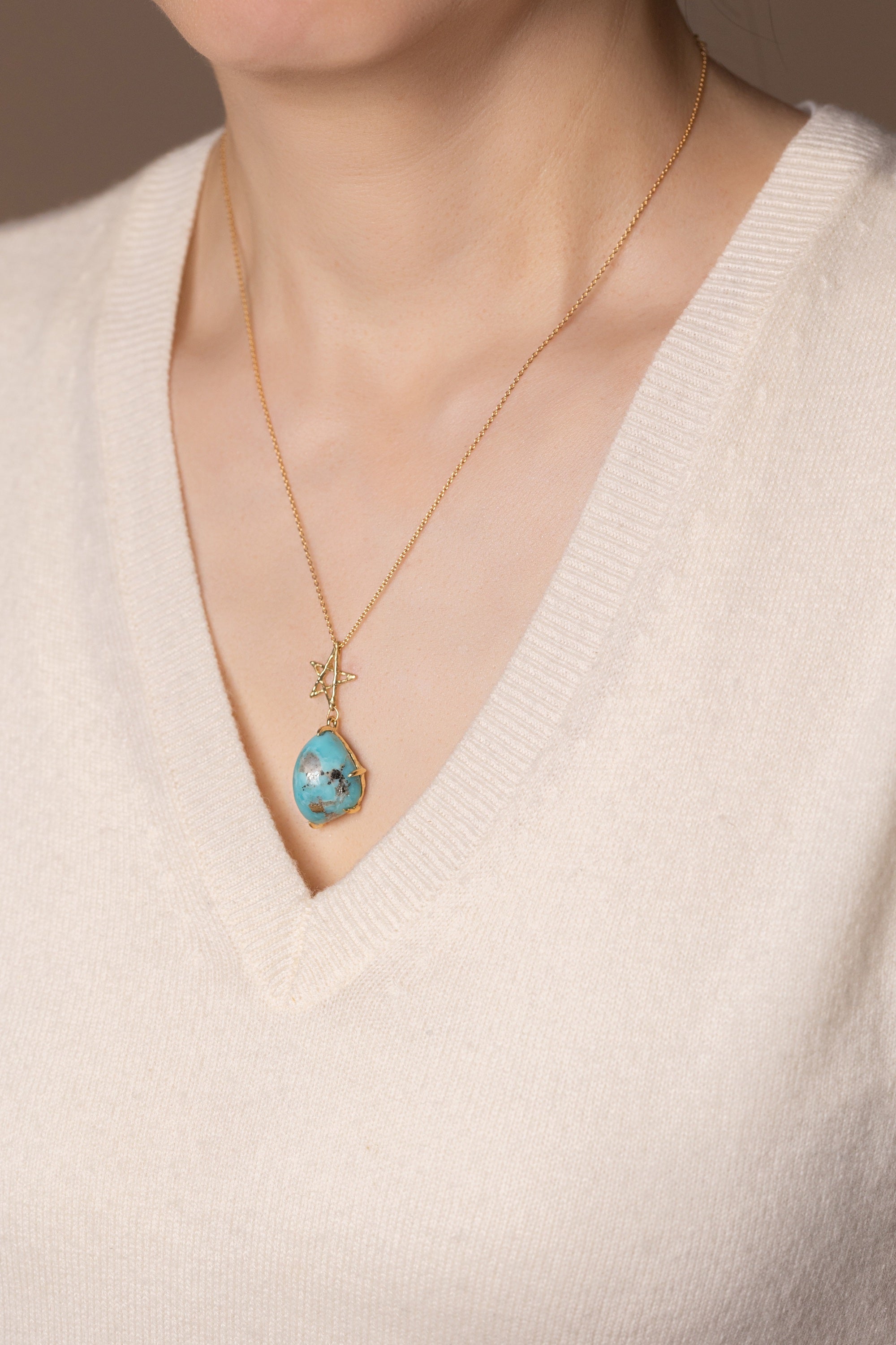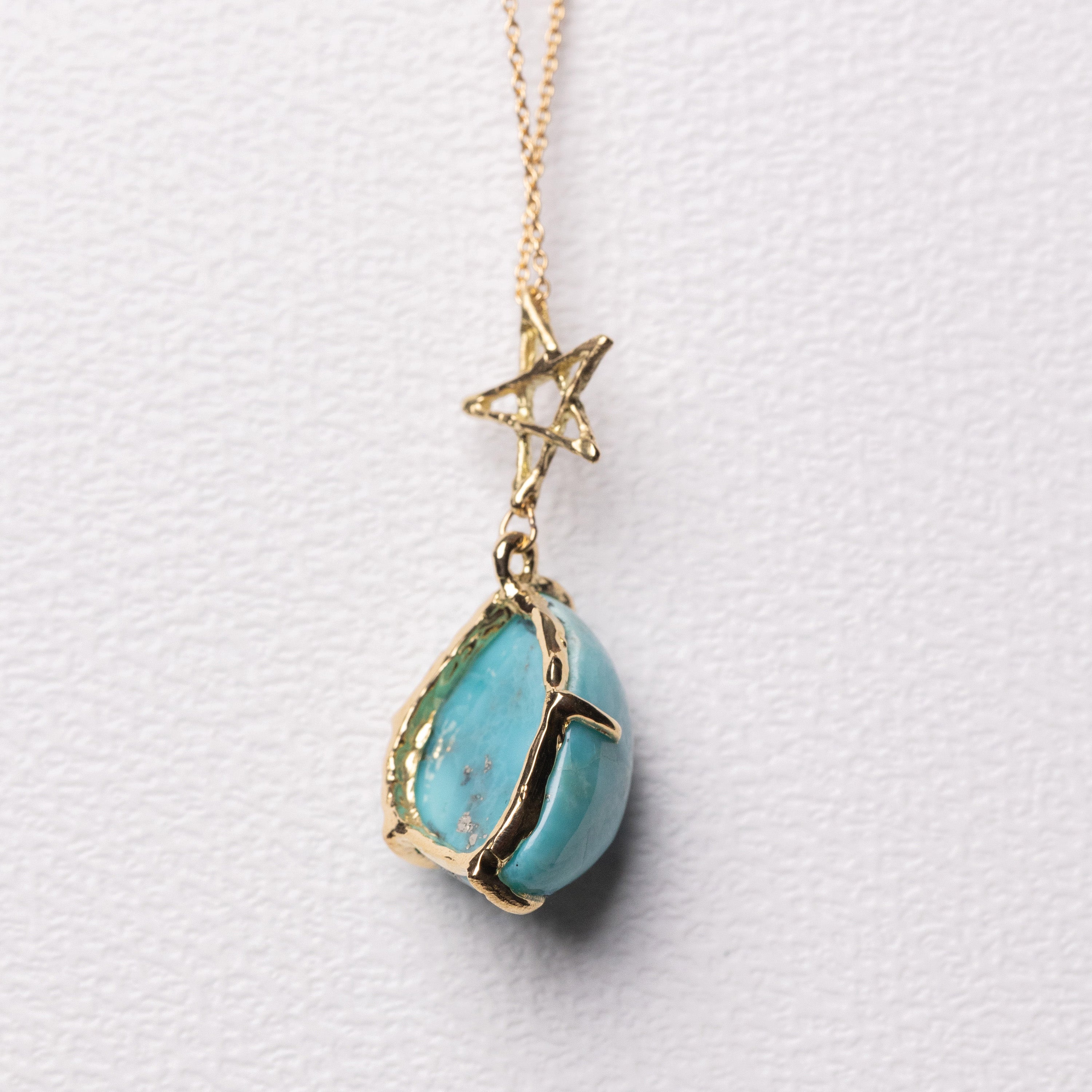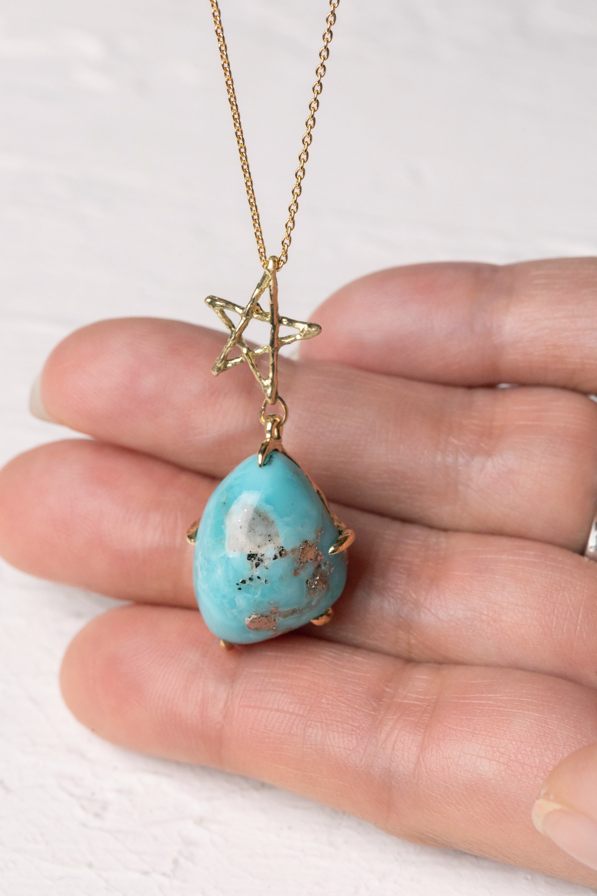 一筆書きの星からぶら下がるごろっとしたパイライトターコイズのネックレス