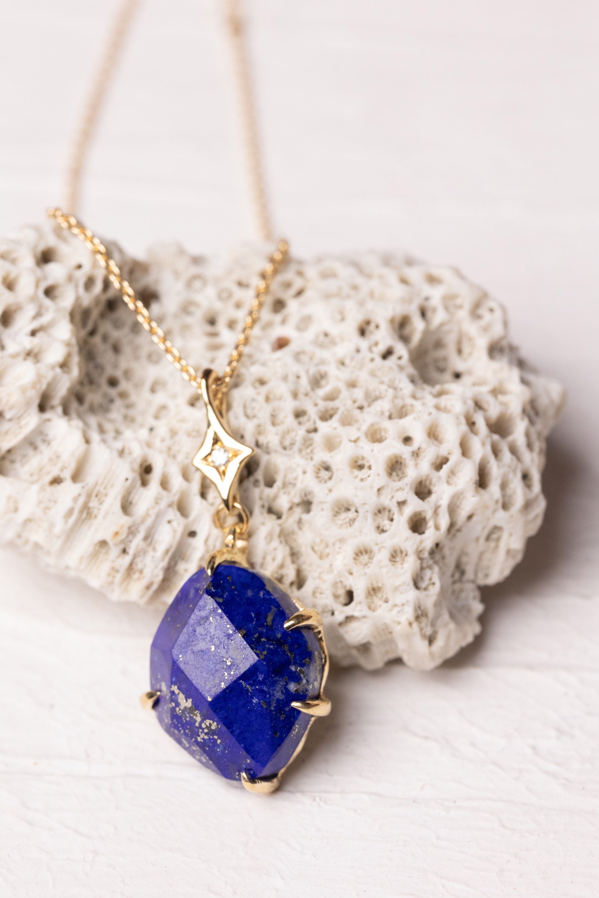 星屑からぶら下がることで、ラピスの重さや色の深さが自然に引き立ちます。